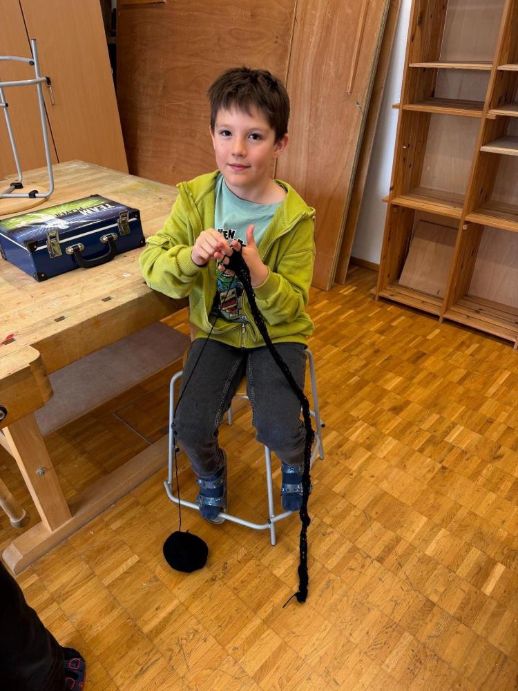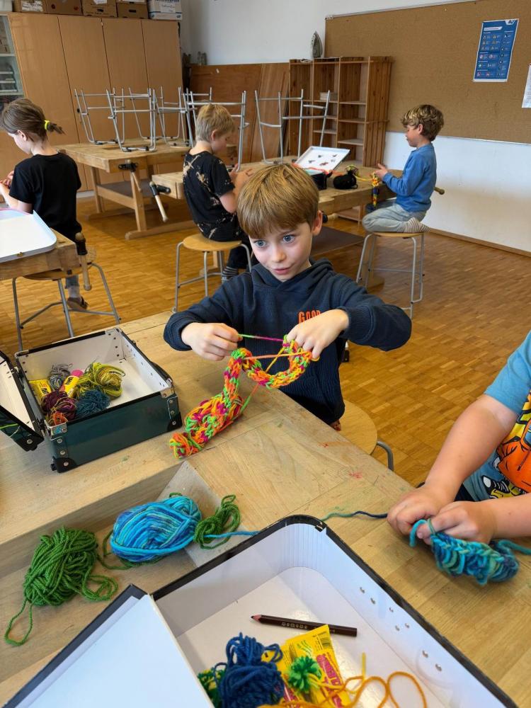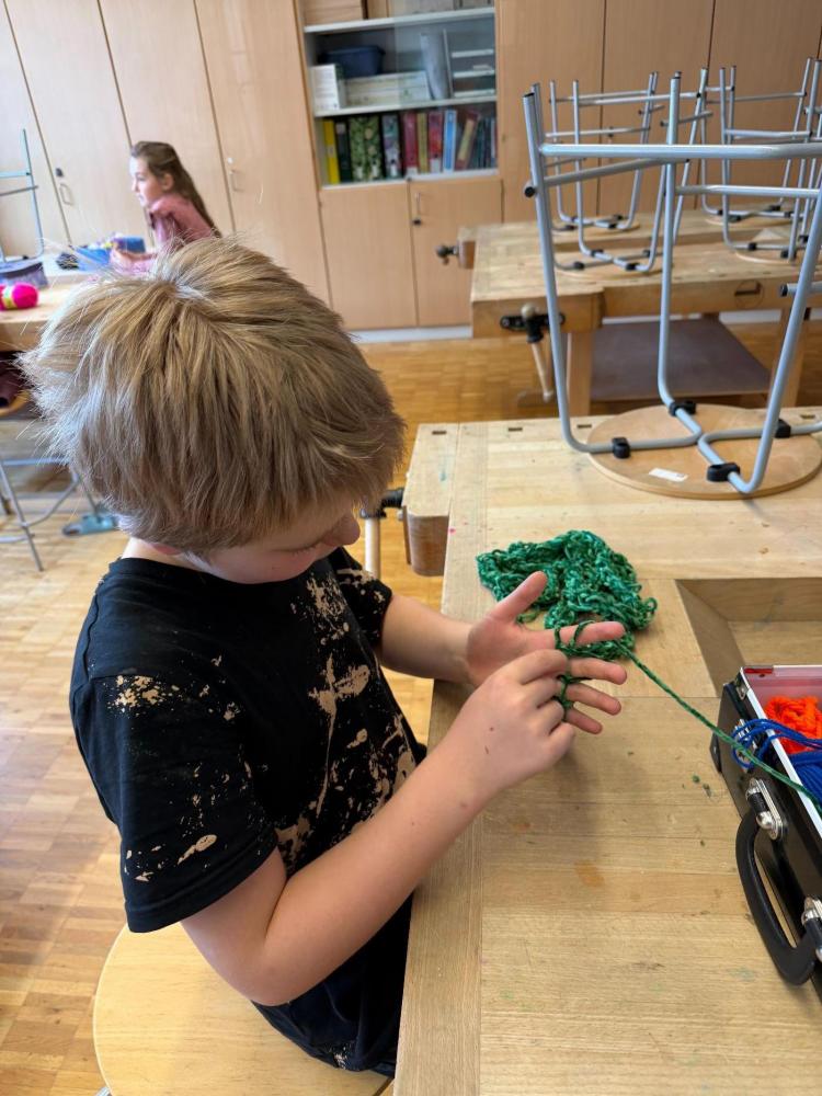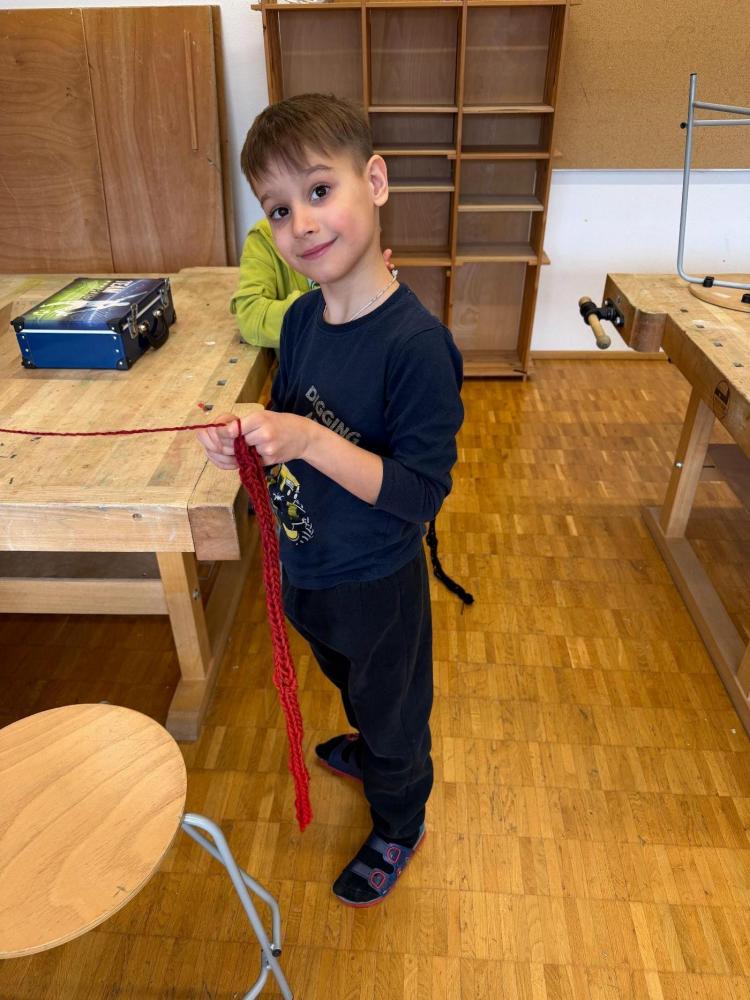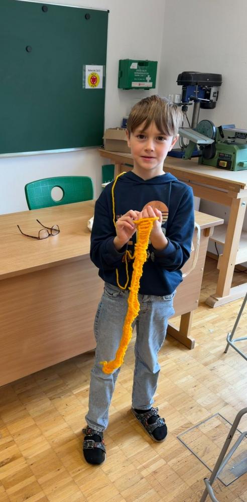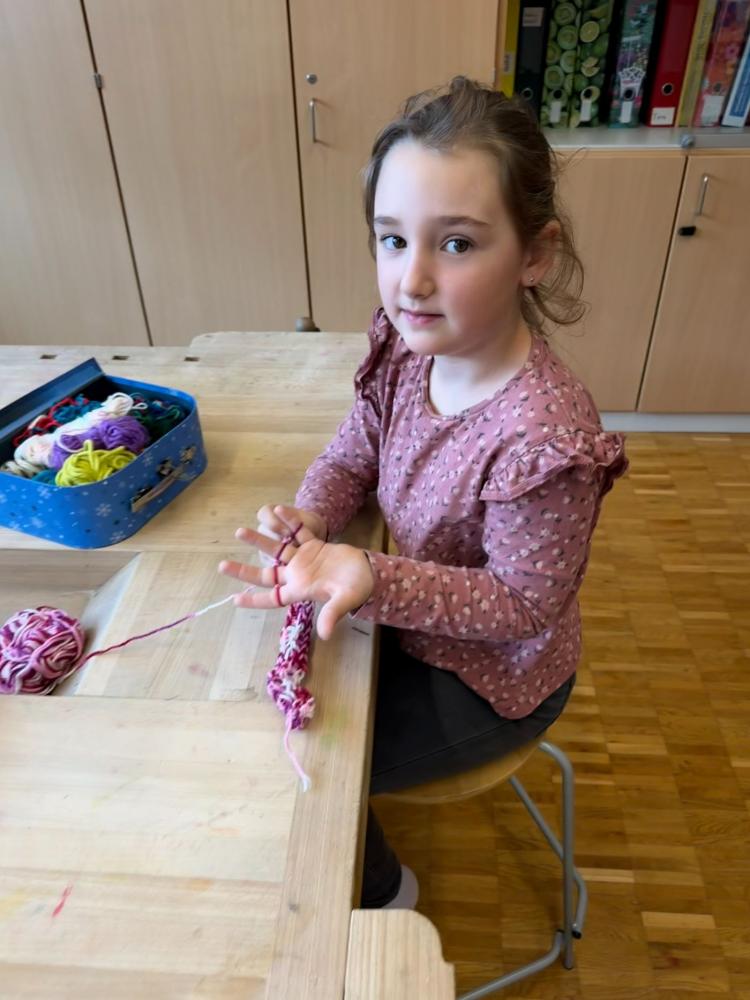 Große Geschicklichkeit, Geduld und Ausdauer bewiesen die Schülerinnen und Schüler der Klasse 2a in den letzten Technik-und-Design-Stunden beim Thema „Fingerstricken“. Nachdem alle Kinder die Technik kennengelernt und geübt hatten, wurde mit viel Motivation an den eigenen Werkstücken gearbeitet. Mit großer Konzentration und Freude entstanden nach und nach schöne gestrickte Stücke. Einige Kinder nahmen ihre Arbeit sogar mit nach Hause und strickten dort begeistert weiter.
