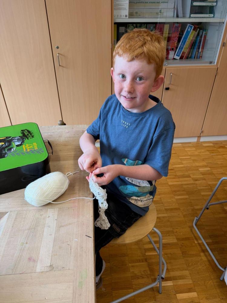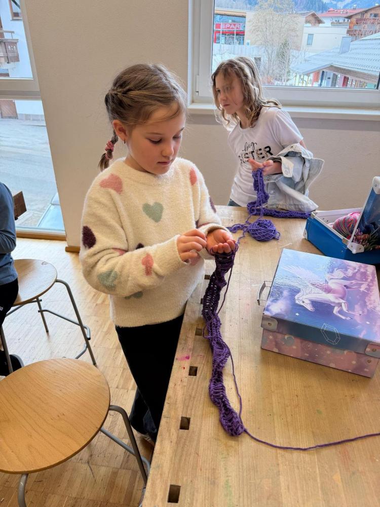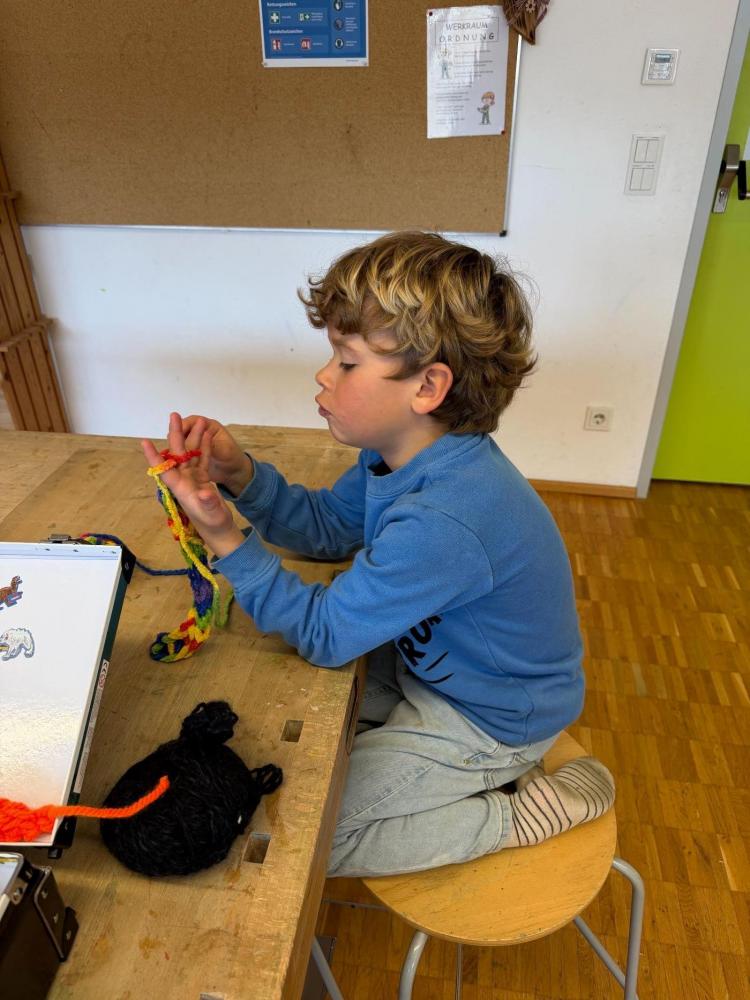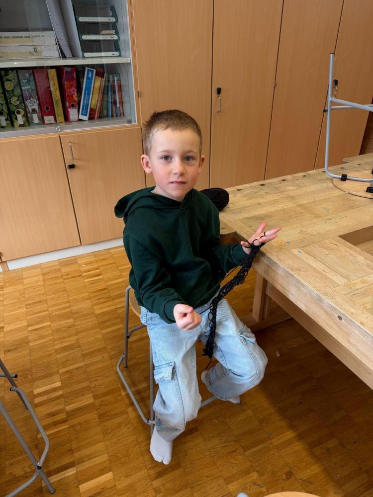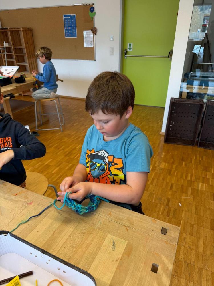 Große Geschicklichkeit, Geduld und Ausdauer bewiesen die Schülerinnen und Schüler der Klasse 2a in den letzten Technik-und-Design-Stunden beim Thema „Fingerstricken“. Nachdem alle Kinder die Technik kennengelernt und geübt hatten, wurde mit viel Motivation an den eigenen Werkstücken gearbeitet. Mit großer Konzentration und Freude entstanden nach und nach schöne gestrickte Stücke. Einige Kinder nahmen ihre Arbeit sogar mit nach Hause und strickten dort begeistert weiter.