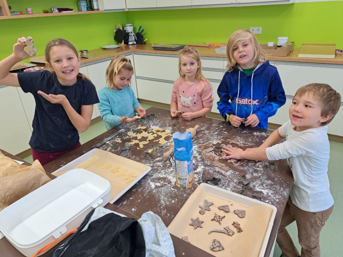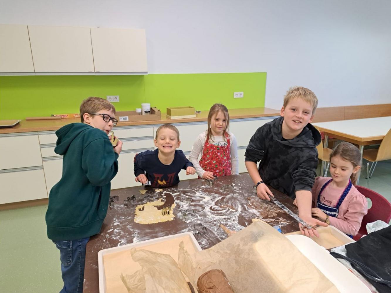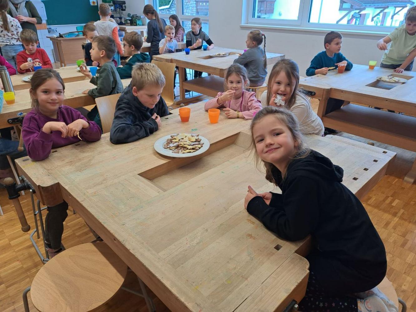 Die Schutzengel der Klasse 4b feierten gemeinsam mit ihren Schützlingen aus der 1. Klasse eine kleine Adventfeier. Zusammen wurden leckere Kekse gebacken, fröhliche Weihnachtslieder gesungen und die gemeinsame Zeit genossen. Die Kinder hatten viel Freude und stimmten sich miteinander auf die bevorstehende Adventszeit ein.