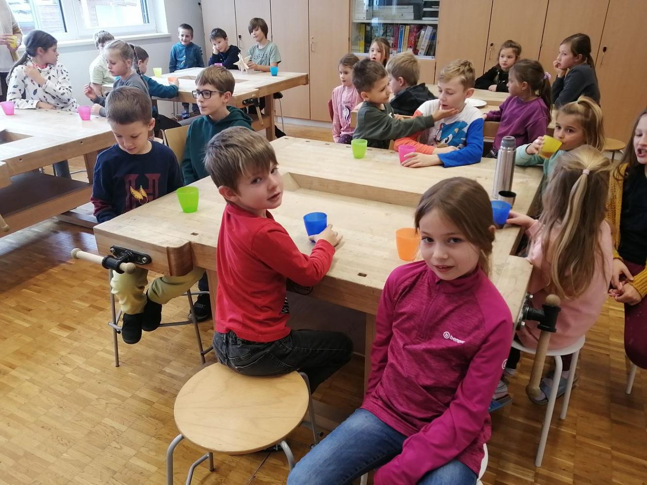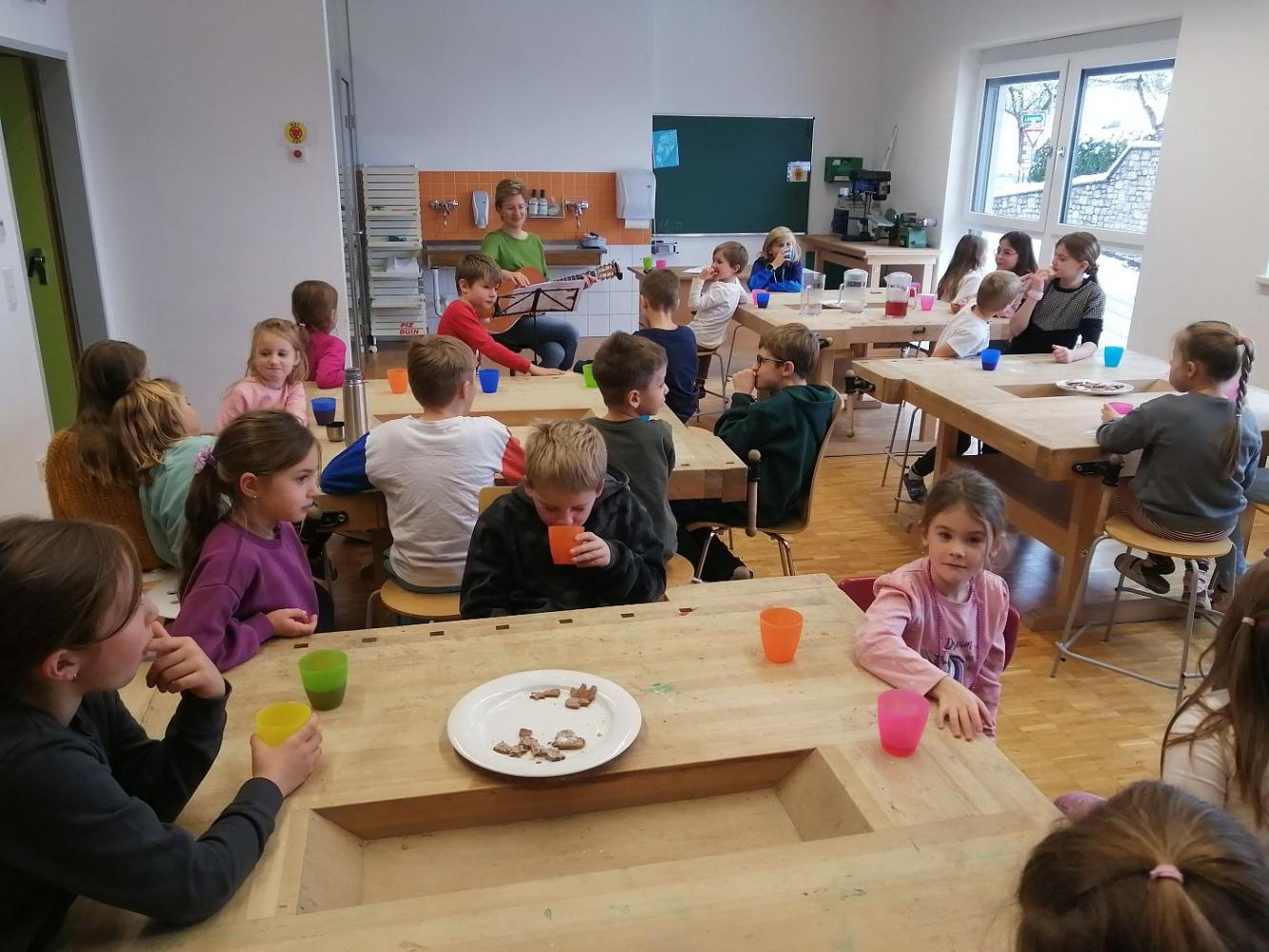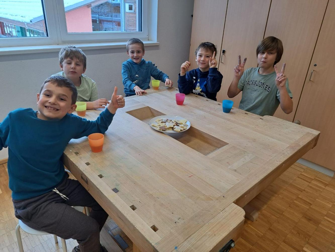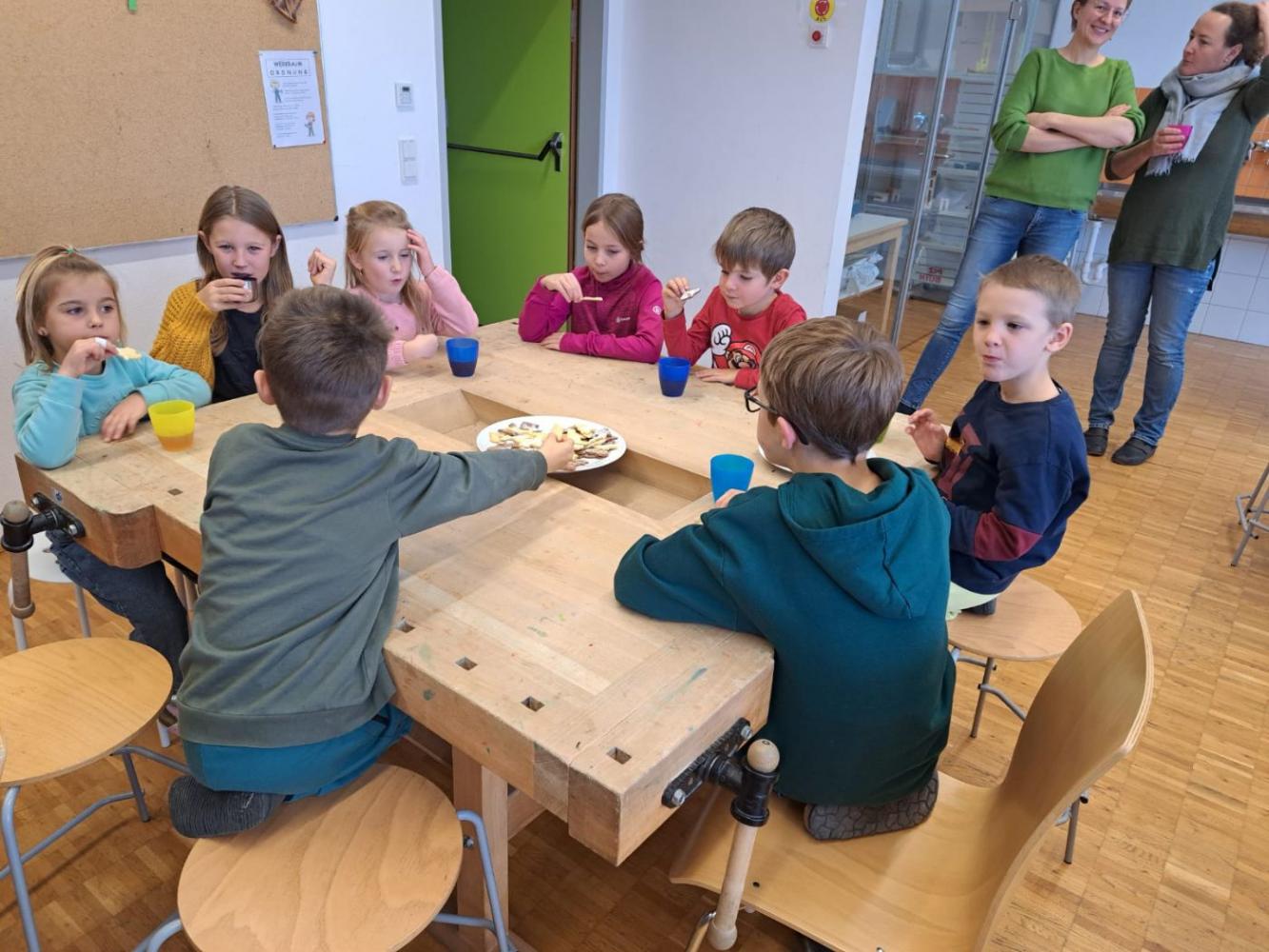 Die Schutzengel der Klasse 4b feierten gemeinsam mit ihren Schützlingen aus der 1. Klasse eine kleine Adventfeier. Zusammen wurden leckere Kekse gebacken, fröhliche Weihnachtslieder gesungen und die gemeinsame Zeit genossen. Die Kinder hatten viel Freude und stimmten sich miteinander auf die bevorstehende Adventszeit ein.