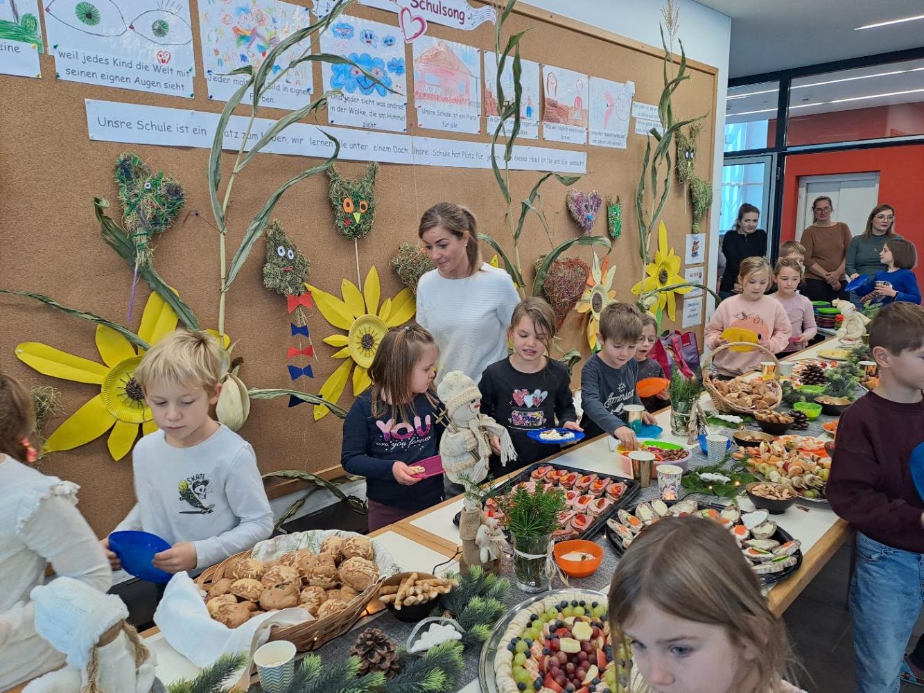 Unsere routinierten Kinder aus der 4a Klasse zauberten wieder ein herrliches Buffet für die ganze Schule.