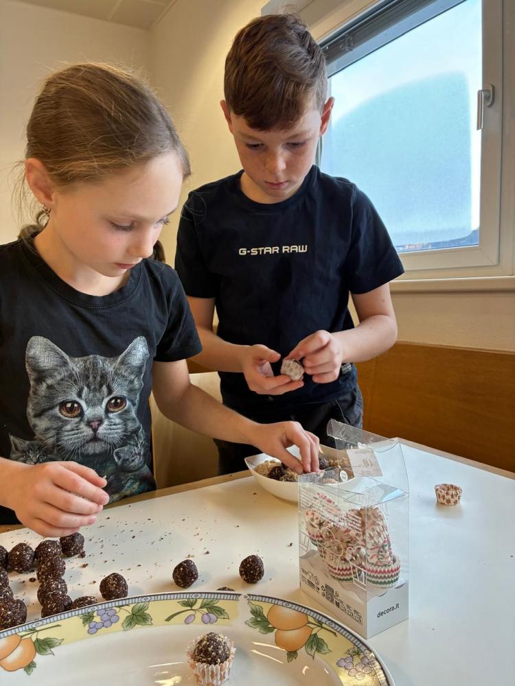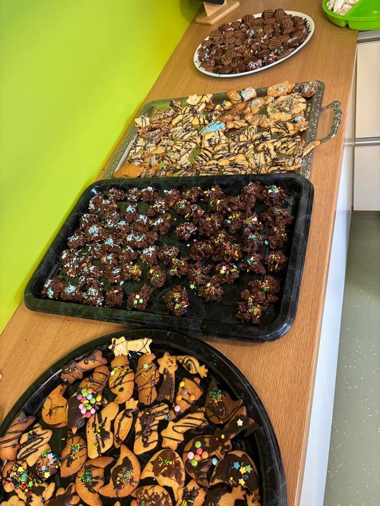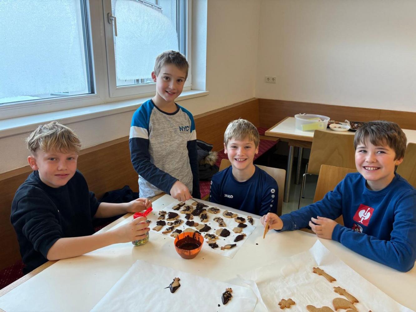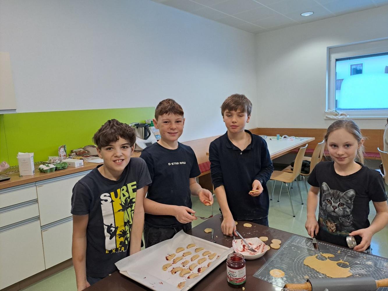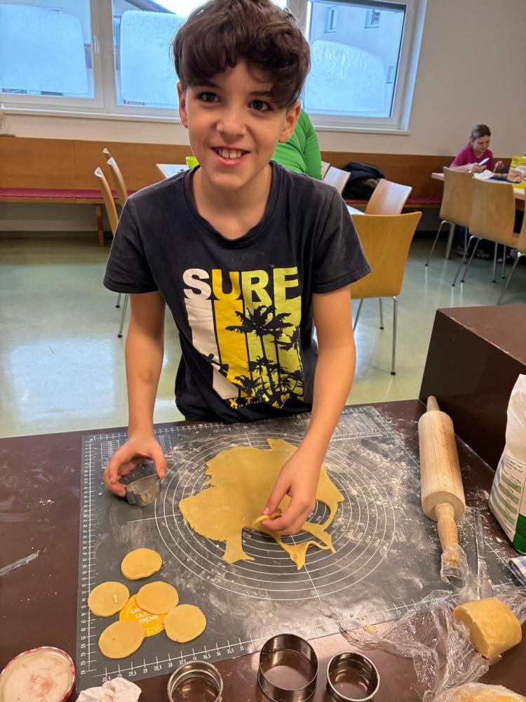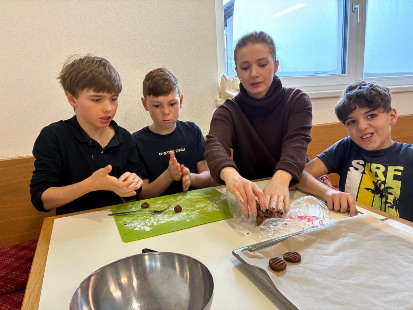 Auch beim Kekse backen waren sie mit Begeisterung dabei. Die geschickten Schülerinnen und Schüler wurden von ihren Müttern unterstützt und somit waren die Keksdosen schnell voll!
