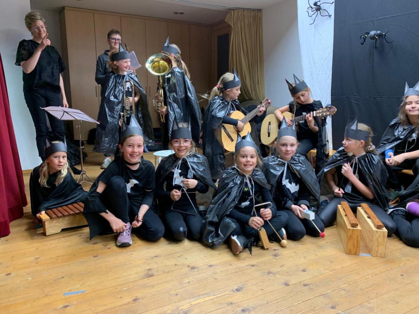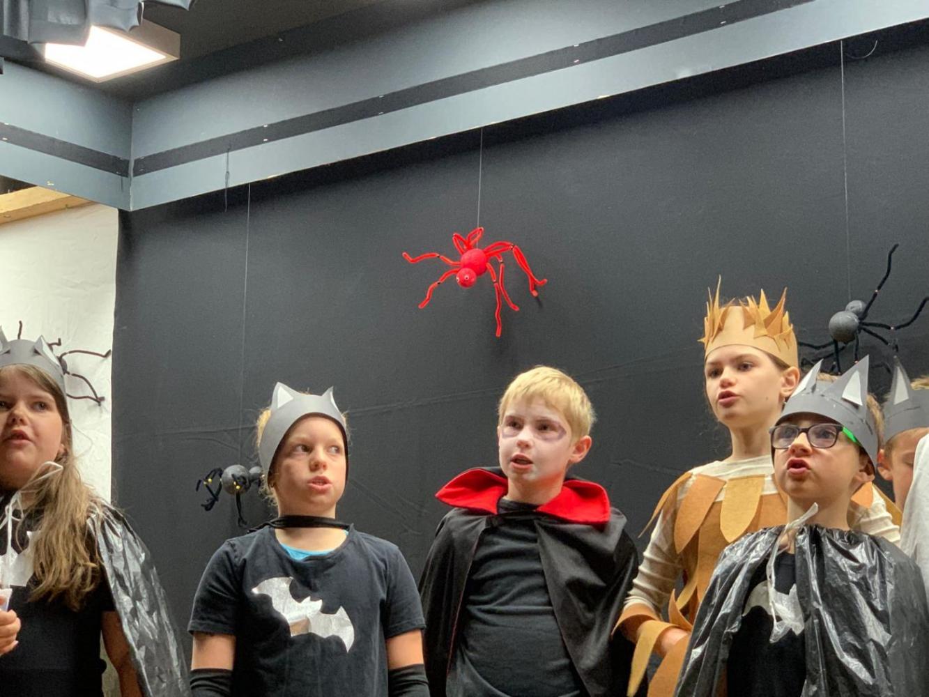 Mit vollem Einsatz und Engagement verwandelten die Kinder den Theatersaal Niederau in die Gruselvilla "Spooky" und überzeugten das Publikum mit selbstbewusster Bühnenpräsenz, Gesang und Tanz.