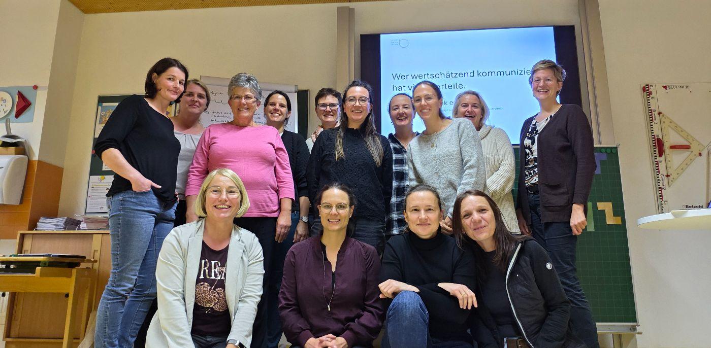 Am 4. November 2025 fand an der Volksschule Niederau ein Workshop zur Wertschätzenden Kommunikation nach dem Modell der Gewaltfreien Kommunikation mit dem gesamten Team statt. Die Referentin Nicole Burtscher, Akademischer Mentalcoach & Dipl. Lebens- und Sozialberaterin & Supervisorin aus Vorarlberg, begeisterte die Teilnehmerinnen mit viel Fachwissen sowie ihrer offenen und positiven Art. Gemeinsam erarbeiteten wir konkrete erste Schritte für ein Konzept, um wertschätzende Kommunikation an der Volksschule Niederau einzuführen und als gemeinsame Sprache zu etablieren. Besonderen Fokus legen wir dabei auf die „Giraffensprache“, eine Sprache des Herzens, die hilft, Konflikte achtsam zu lösen und Gefühle und Bedürfnisse klar auszudrücken. Mit Symbolen, Farben und Maskottchen möchten wir dieses wertvolle Thema den Kindern in den nächsten Wochen, Monaten und Jahren auf spielerische, kindgerechte und leicht verständliche Weise zugänglich machen. Unsere gemeinsame Vision ist klar: Wir alle sprechen eine gemeinsame Sprache und verstehen uns dadurch viel besser. Unsere Schülerinnen und Schüler sollen die Möglichkeit bekommen, tiefer in ihre Gefühlswelt einzutauchen, Gefühle bewusst zu spüren und zu benennen, ihre Bedürfnisse zu erkennen und so ihre soziale sowie emotionale Intelligenz weiterentwickeln.